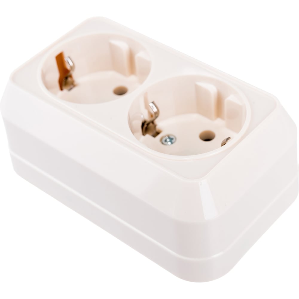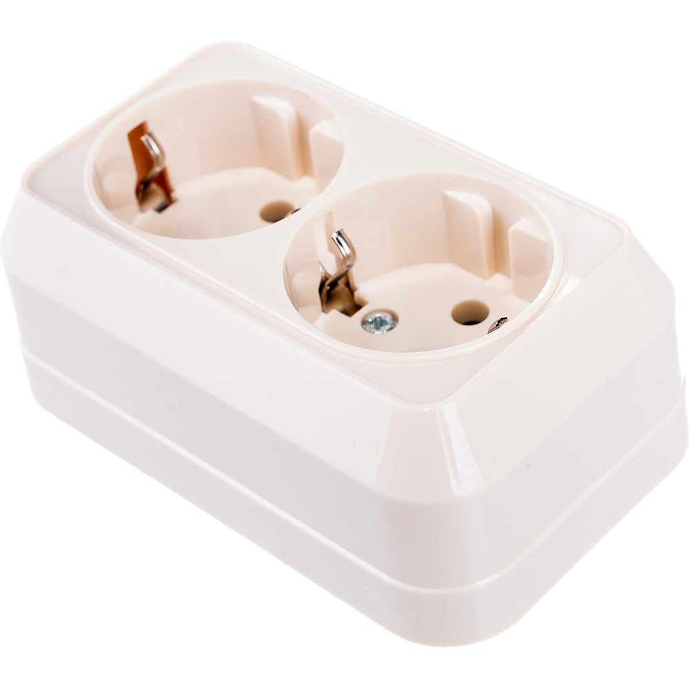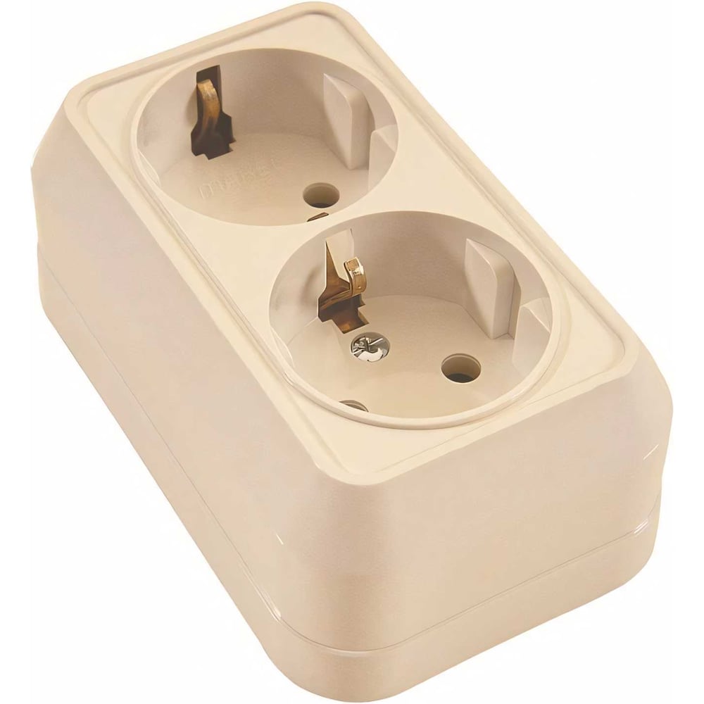 Розетка двойная накладная с заземлением, крем Makel 45282