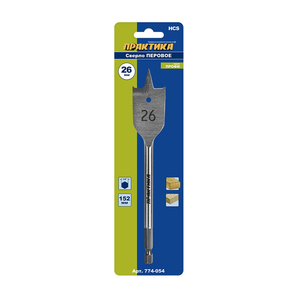 Сверло перовое по дереву (26х152 мм) ПРАКТИКА 774-054