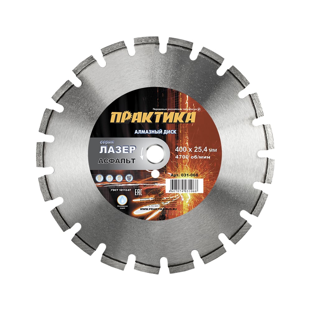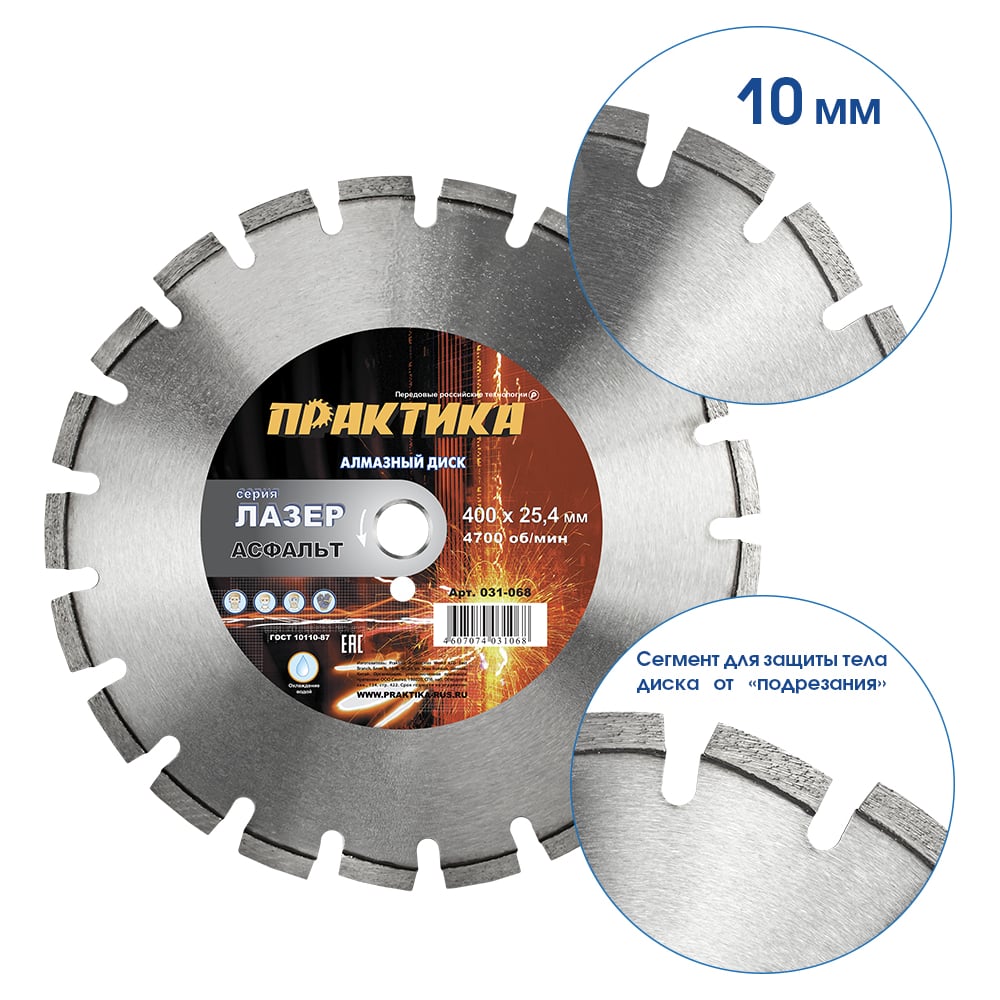 Диск алмазный сегментный Лазер-90 по асфальту (400х25.4 мм) ПРАКТИКА 031-068