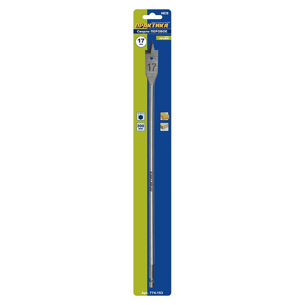 Сверло перовое по дереву (17х300 мм) ПРАКТИКА 774-153