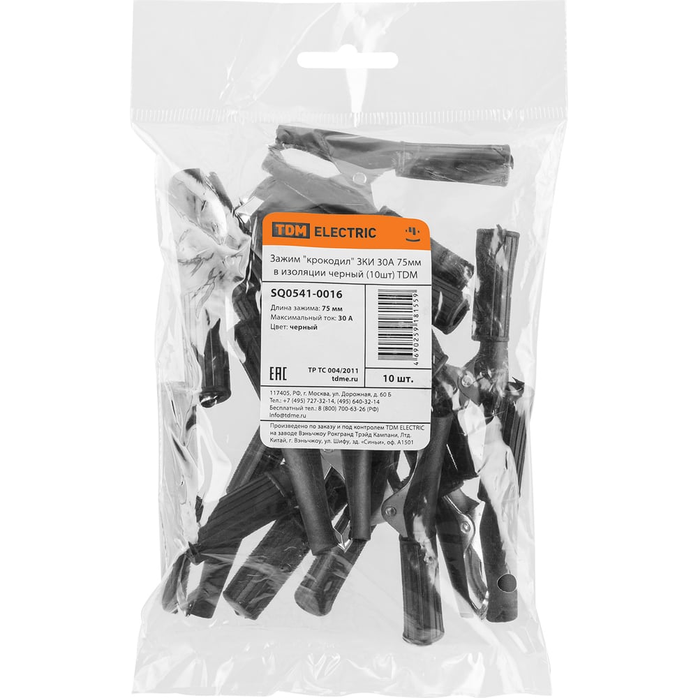 Зажим для проводов (крокодил) ЗКИ 30А TDM ELECTRIC 75мм в изоляции черный упаковка 10 штук SQ0541-0016