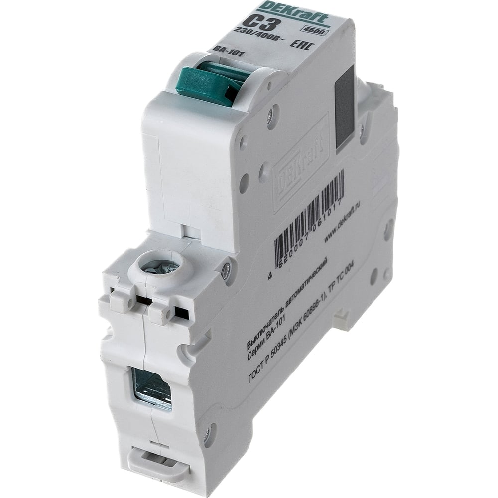 Автоматический выключатель (АВ) DEKraft ВА-101, 1 Р, хар-ка C, 3 А, 4.5 кА 11051DEK