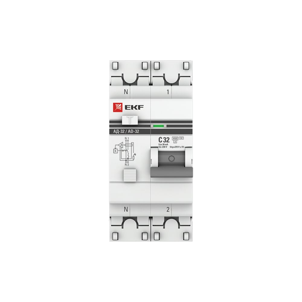 Дифференциальный автомат EKF АД-32 1P+N 32А/30мА (хар. C, AC, электронный, защита 270В) 4,5кА PROxima DA32-32-30-pro