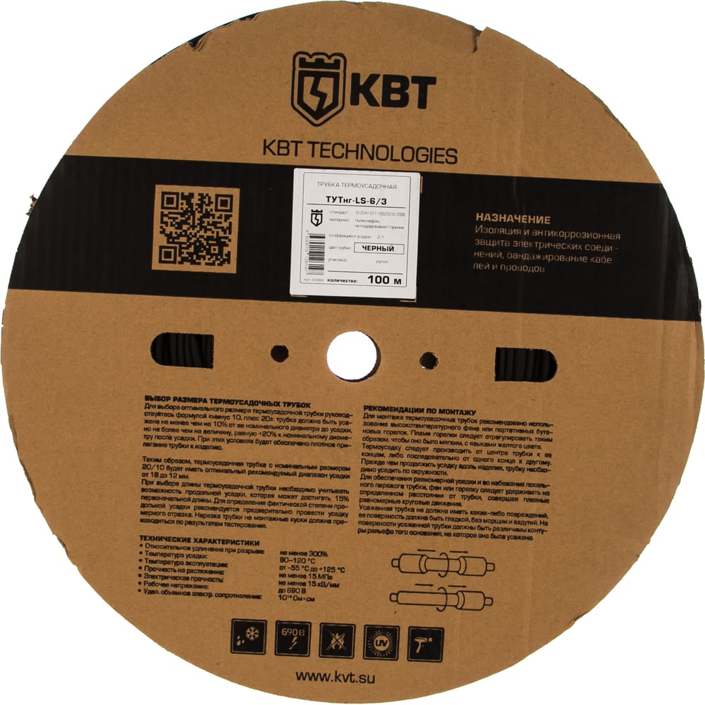 Трубка термоусадочная ТУТнг-6/3 черная КВТ 60088