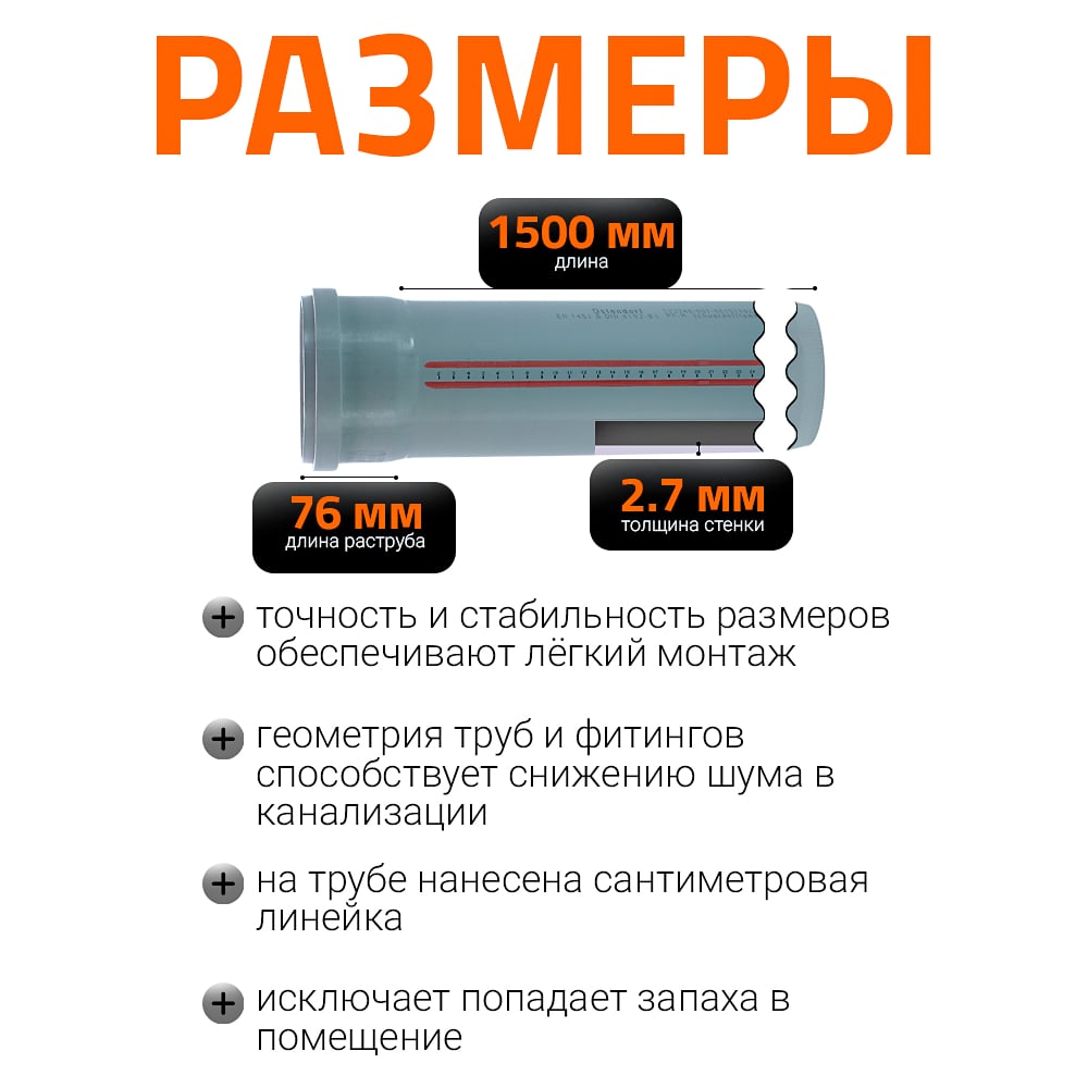Труба однораструбная канализационная HTEM 110х1500 Ostendorf 115050