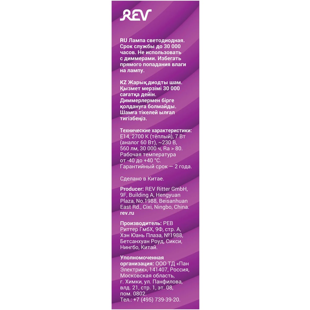 Светодиодная лампа REV LED FC37 Е14 7Вт, 2700K 32351 8