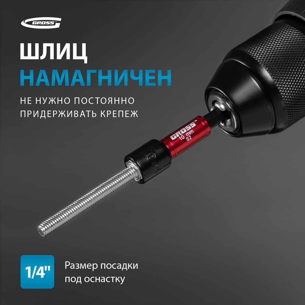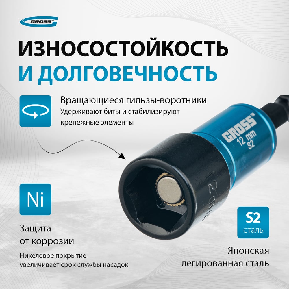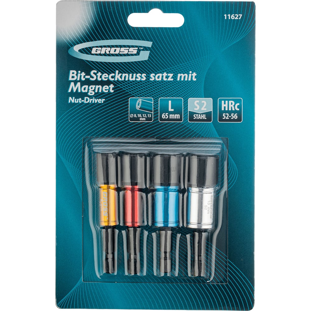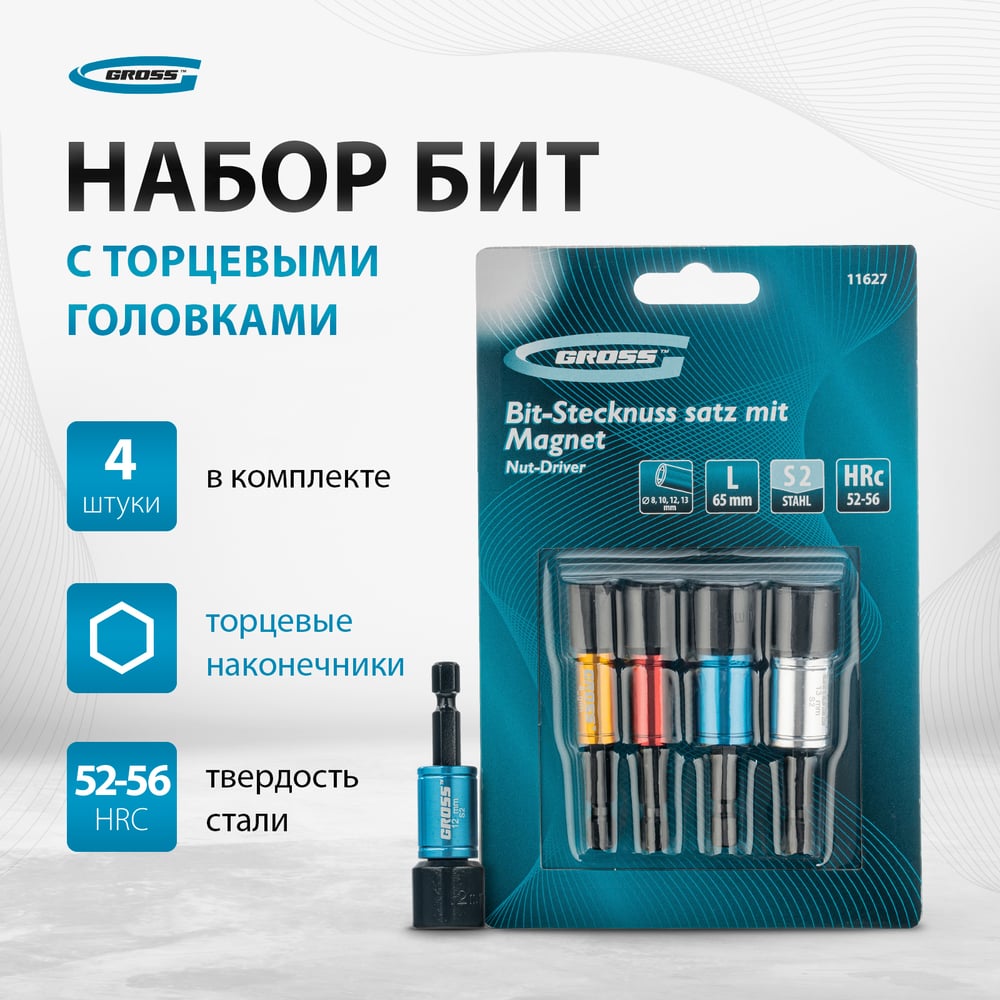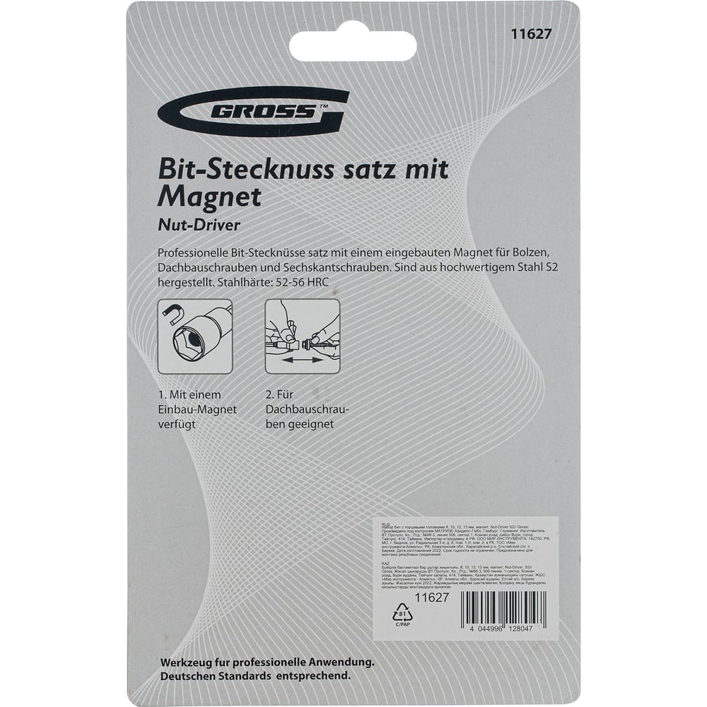 Набор бит с торцевыми головками (8, 10, 12, 13 мм, S2, магнит. Nut-Driver) Gross 11627