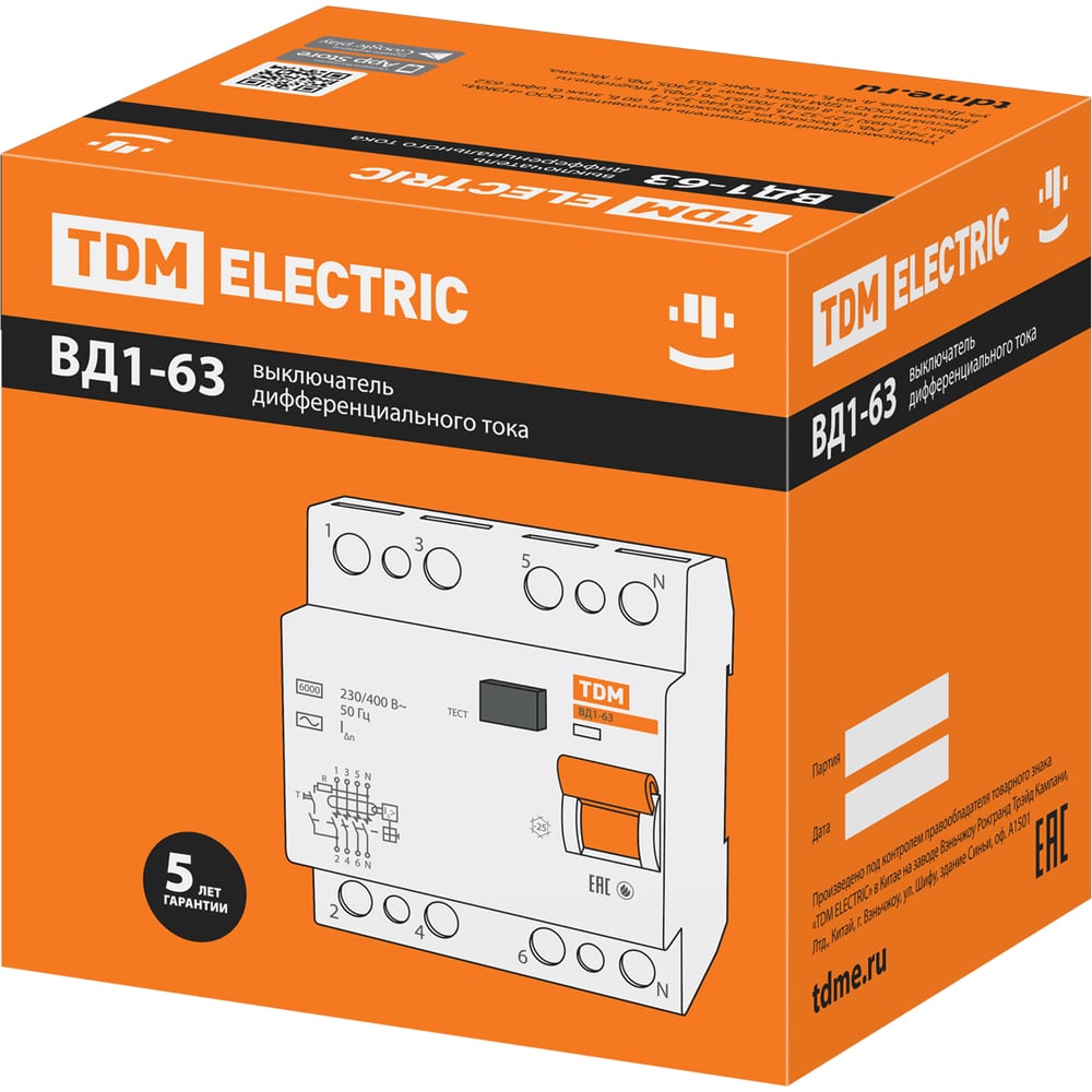 Устройство защитного отключения ВД1-63 4Р 63А 300мА TDM ELECTRIC SQ0203-0043
