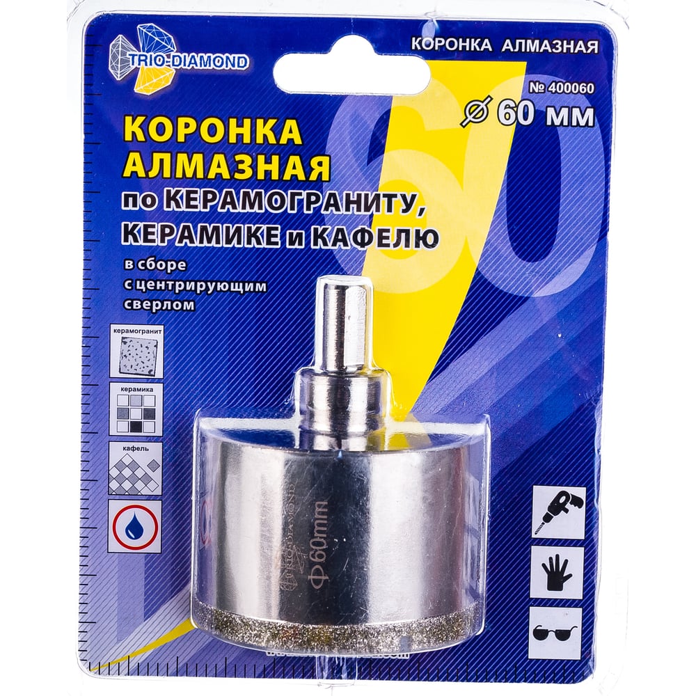 Коронка алмазная по керамике и кафелю с центрирующим сверлом TRIO-DIAMOND 60 мм 400060
