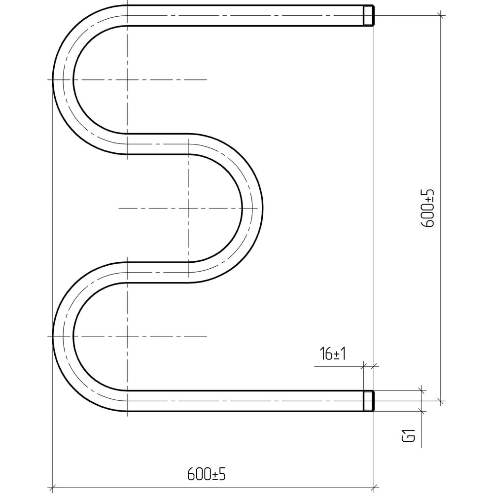 Водяной М-образный полотенцесушитель ТЕРА 600х600 наружная резьба 1 ПСВ-05-10