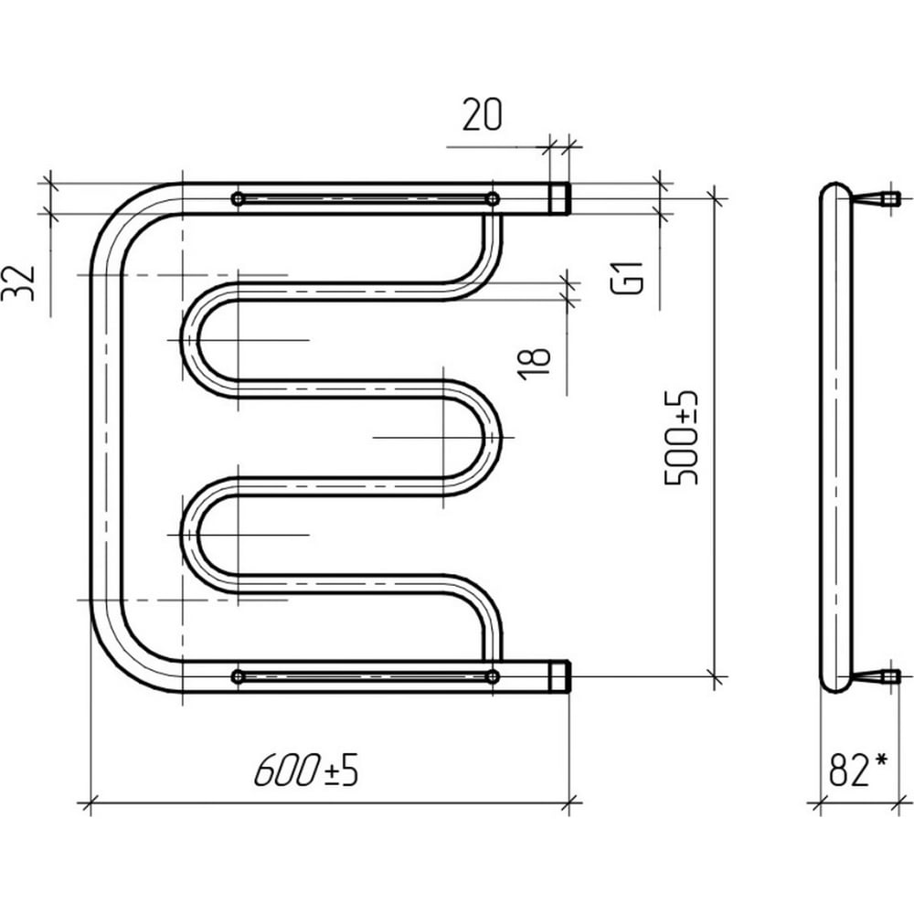 Водяной полотенцесушитель ТЕРА Фокстрот 500х600 наружная резьба 1 ПСВ-02-03
