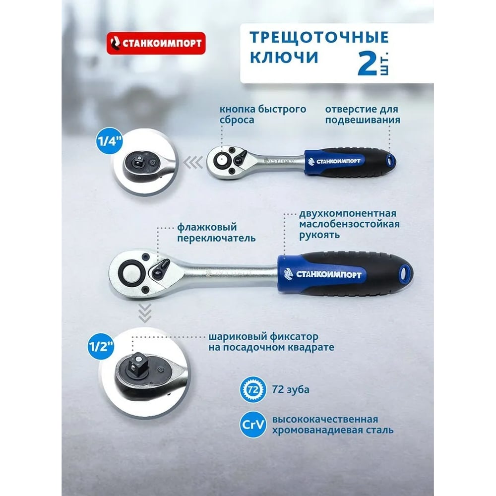 | Посадочный размер трещотки | 1/4; 1/2 дюйма |
