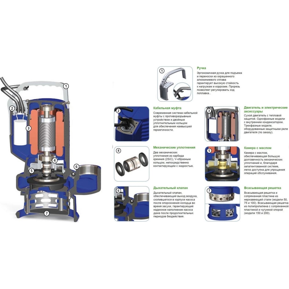 Погружной дренажный дренажный насос ZENIT DR BLUE P 150/2/G50V A1СM/50 301698