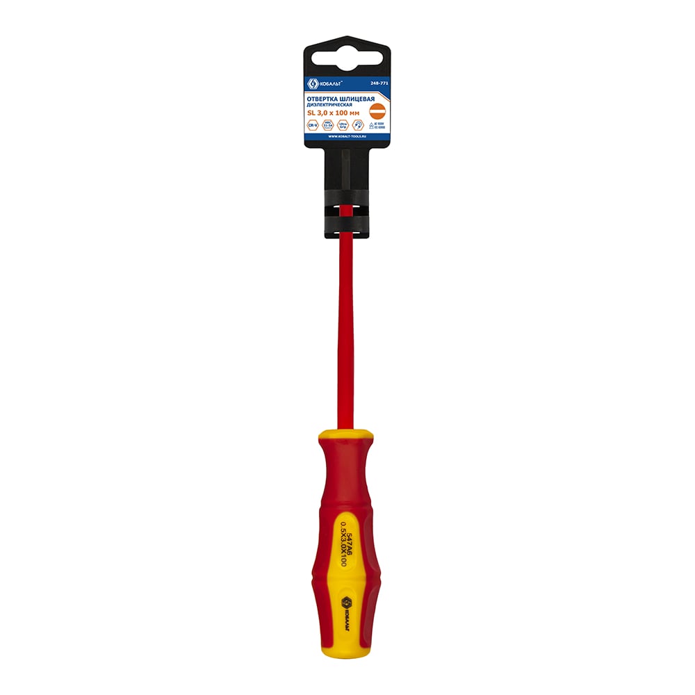 Диэлектрическая отвертка SL 3,0 х 100 мм CR-V, подвес КОБАЛЬТ Ultra Grip 248-771