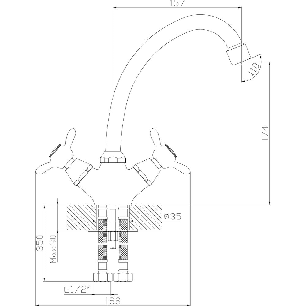 | Диаметр отверстия в раковине | 35 мм |