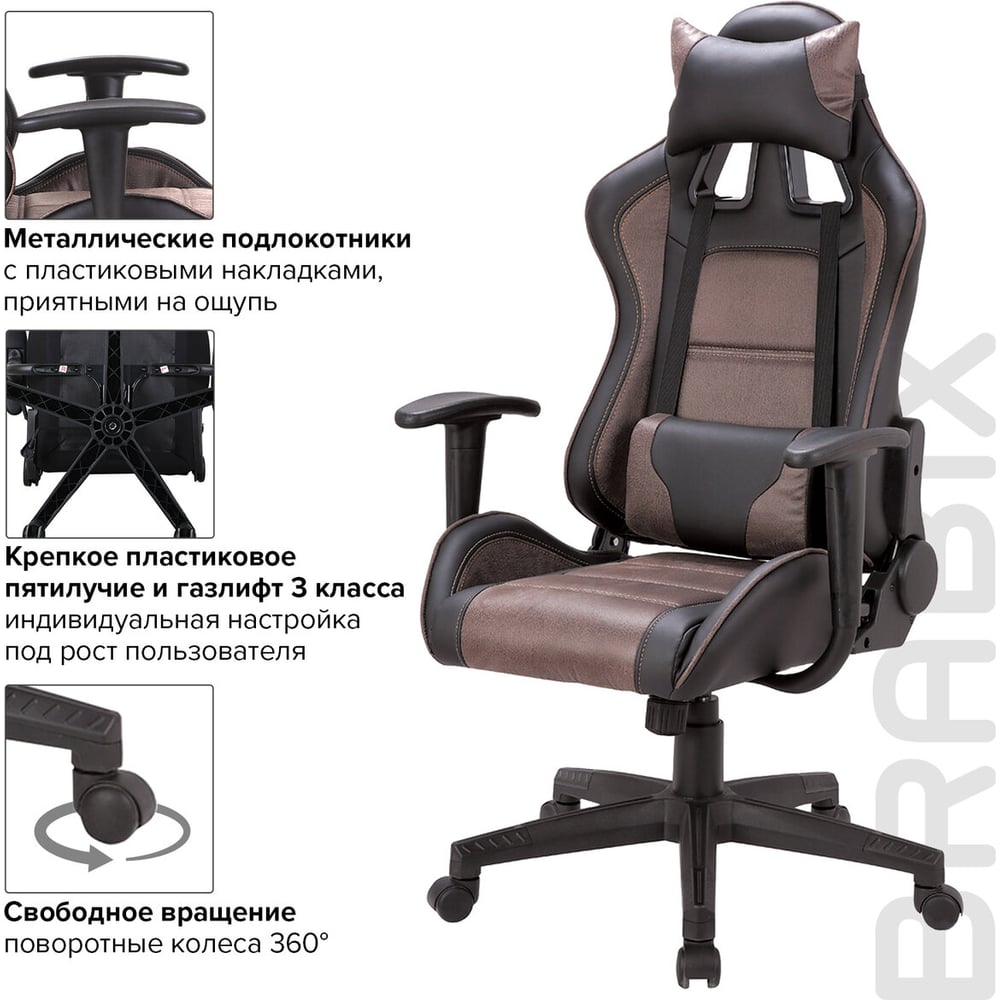 Компьютерное геймерское офисное кресло BRABIX GT Racer GM-100, с подлокотниками, подушки, экокожа 531819