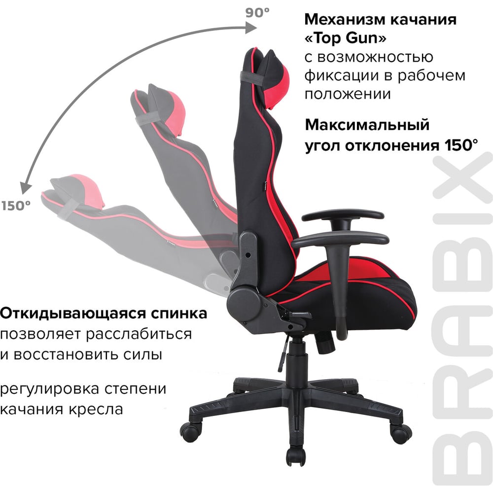Компьютерное геймерское офисное кресло BRABIX , GT Racer GM-101, с подлокотниками, подушка 531820
