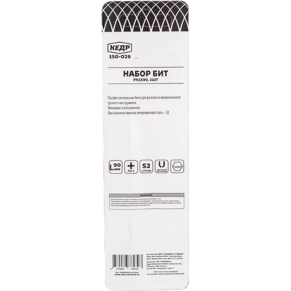 | Количество бит | 2 шт |