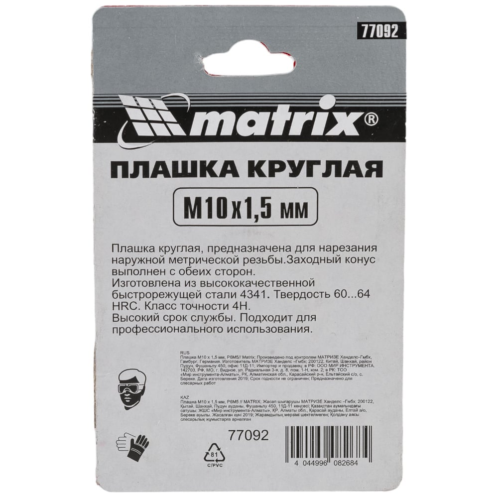 Ручная плашка MATRIX 77092