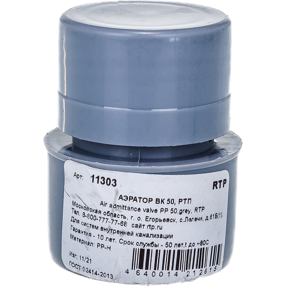 Канализационный аэратор RTP 50, вакуумный клапан, серый 36294