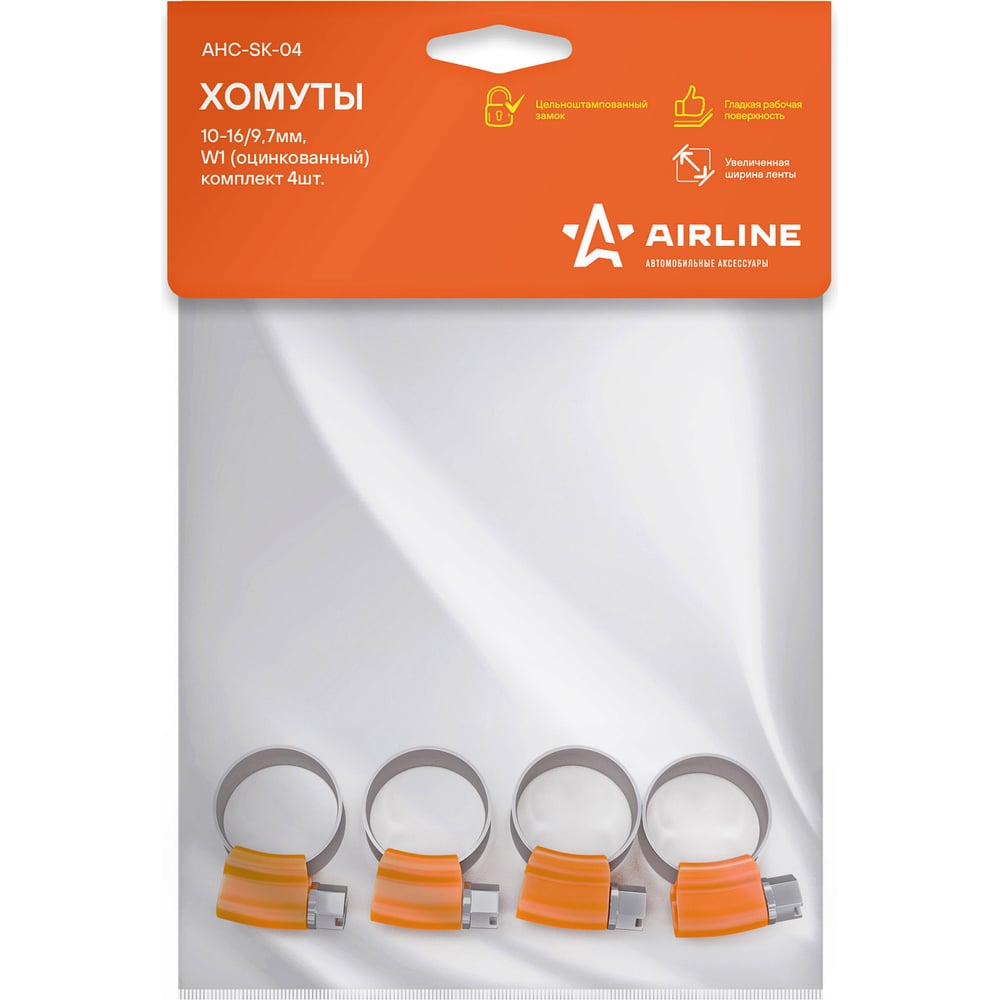 Червячные усиленные хомуты Airline 10-16/9.7 мм W1 оцинк., комплект 4 шт AHC-SK-04