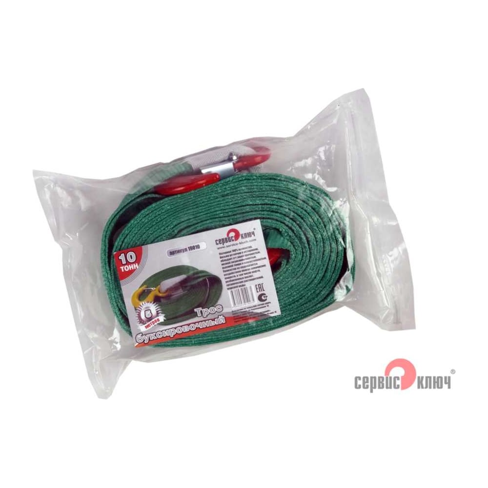 Ленточный усиленный трос СЕРВИС КЛЮЧ 10 т, в пакете 19010