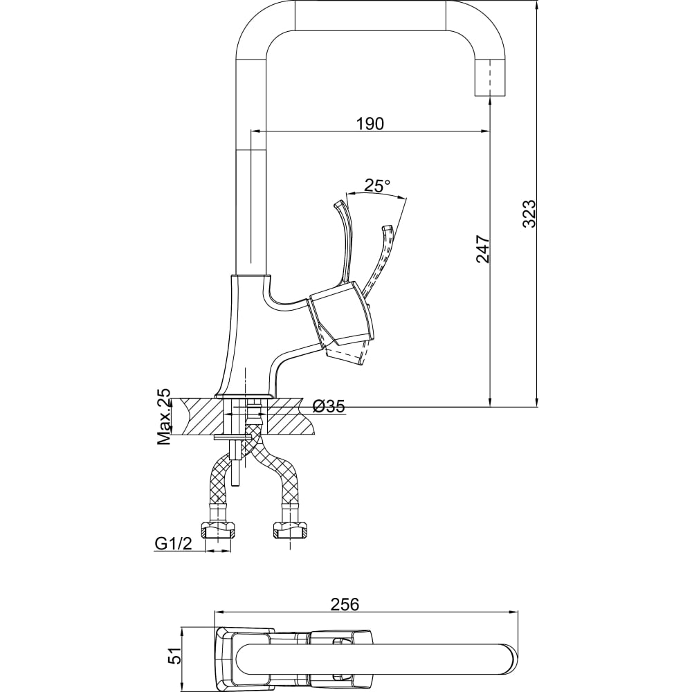 | Высота смесителя | 323 мм |