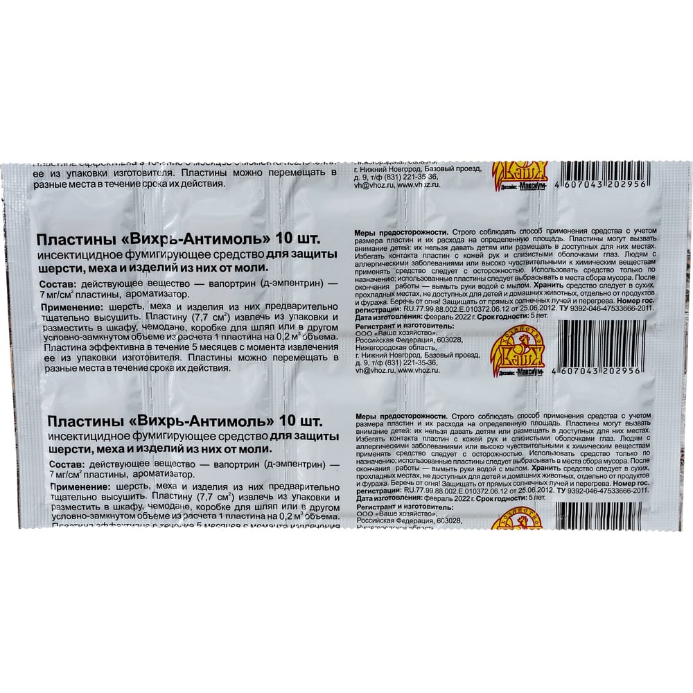| Состав | вапортрин (д-эмпентрин) — 7 мг/см² пластины, ароматизатор, антиоксидант, растворитель |