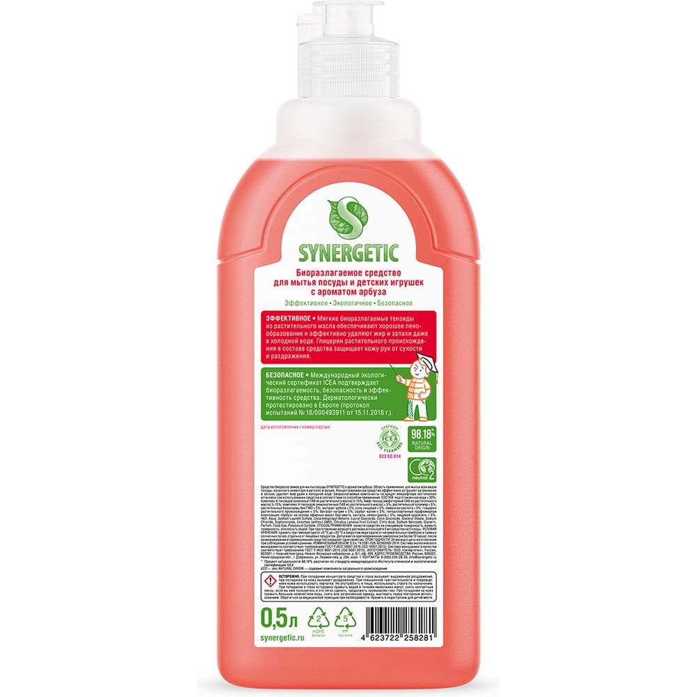 Средство для мытья посуды SYNERGETIC АРБУЗ, 500 мл 4623722258281 103055/14