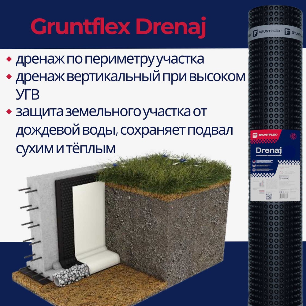 Профилированная мембрана Gruntflex Drenaj GRUDR.2.40