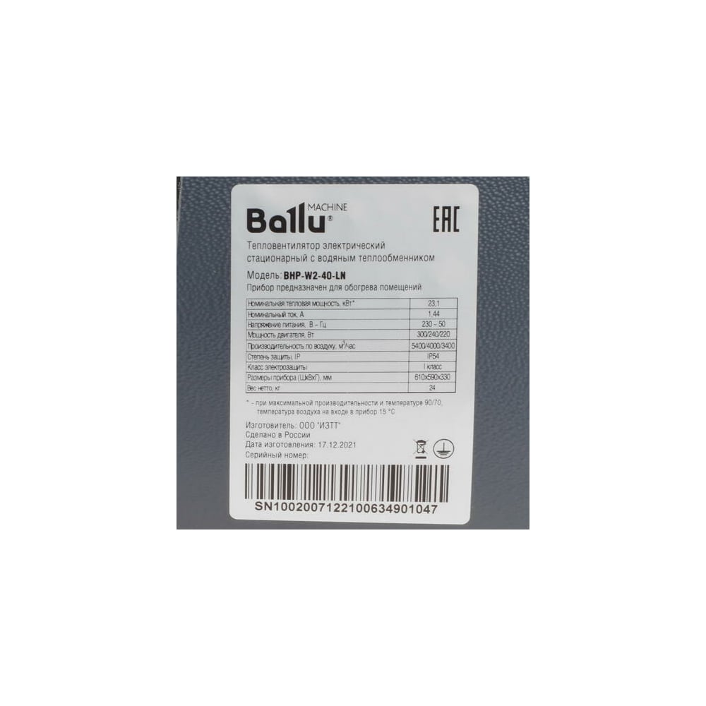 Водяной тепловентилятор Ballu BHP-W2-40-LN НС-1303792