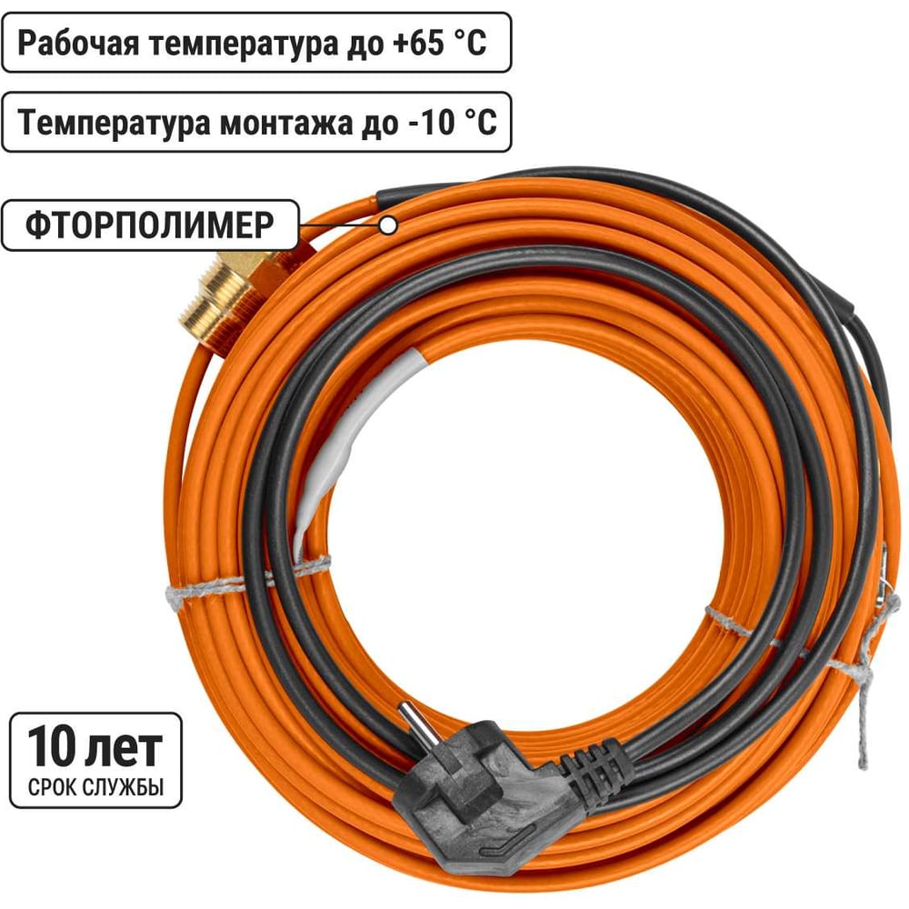 Нагревательный саморегулирующийся кабель TDM ELECTRIC Стоплёд НСК30-В с вилкой, в трубу 30 м, 300 Вт SQ2510-0019