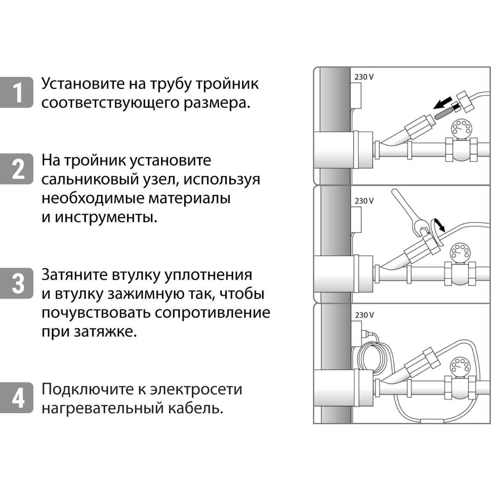 Применение для обогрева труб Цвет черный Установка внутри трубы Вилка в комплекте вилка евро Напряжение 220 В Мощность 300 Вт Длина кабеля 30 м Max рабочая температура 65 °С Изоляция фторполимер Вид кабеля экранированный саморегулирующийся комплект Длина холодного кабеля 2 м Пищевой да Функция саморегулирования теплоотдачи есть Общая длина кабеля 32 м Длина горячего кабеля 30 м