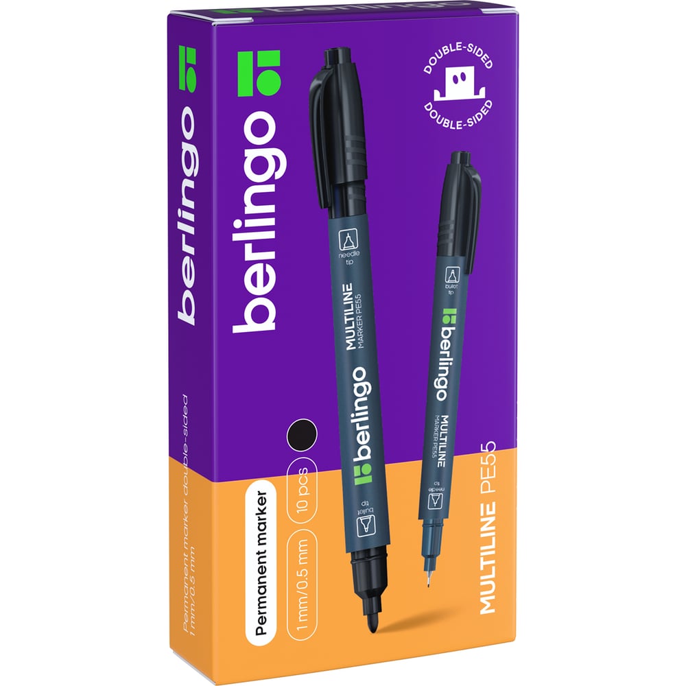 Маркер перманентный двухсторонний Berlingo "Multiline PE55" черный, пулевидный, 0,5/1мм, 10 шт. BMd_07101