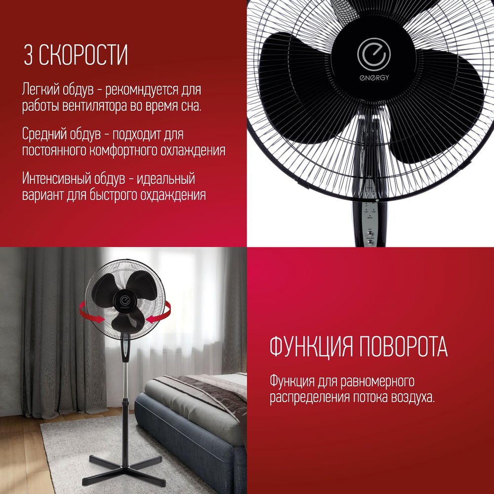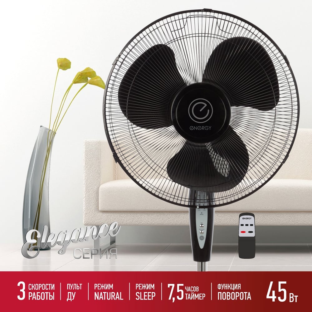 Вентилятор Energy ELEGANCE EN-1624, с пультом, 16 дюйм, черный 100109
