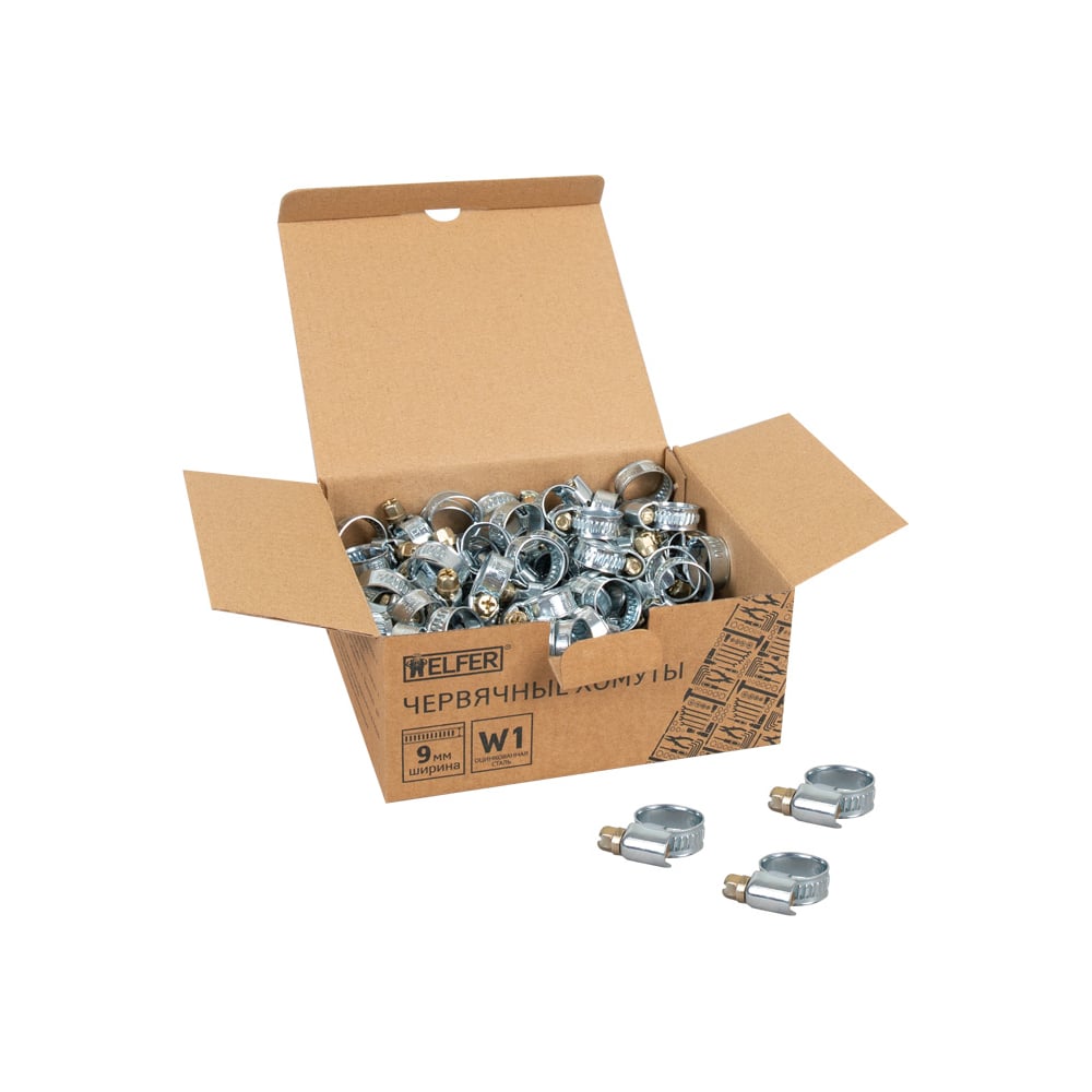 Хомут HELFER W1, 10-16 мм, оцинкованная сталь, уп. 100 шт. HF004036