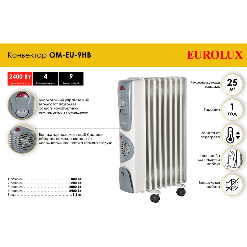 Масляный радиатор Eurolux ОМ-EU-9НВ 67/3/17