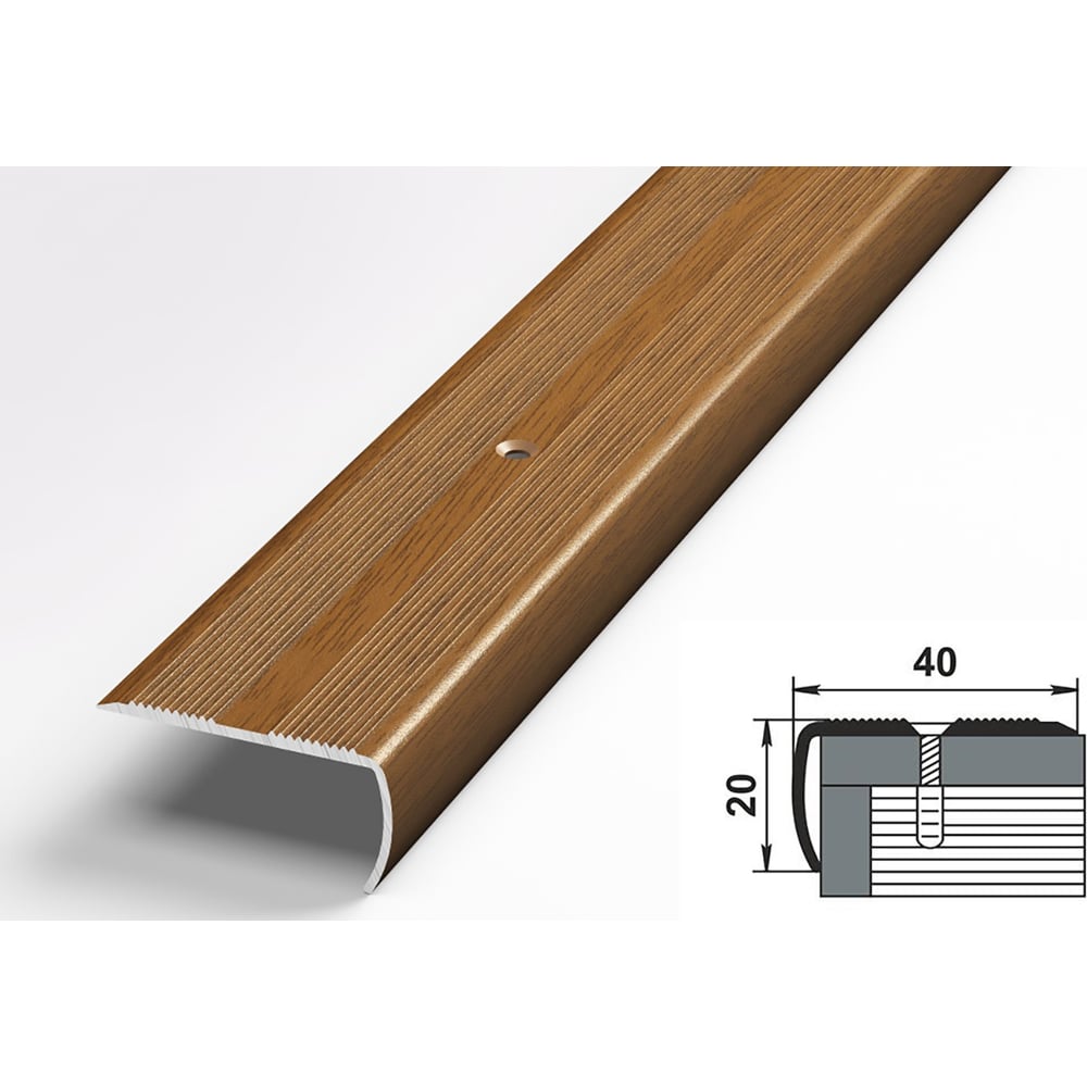 Порог угловой алюминиевый декоративный (40х20 мм, 1,8 м, Орех) ЛУКА УТ000000600