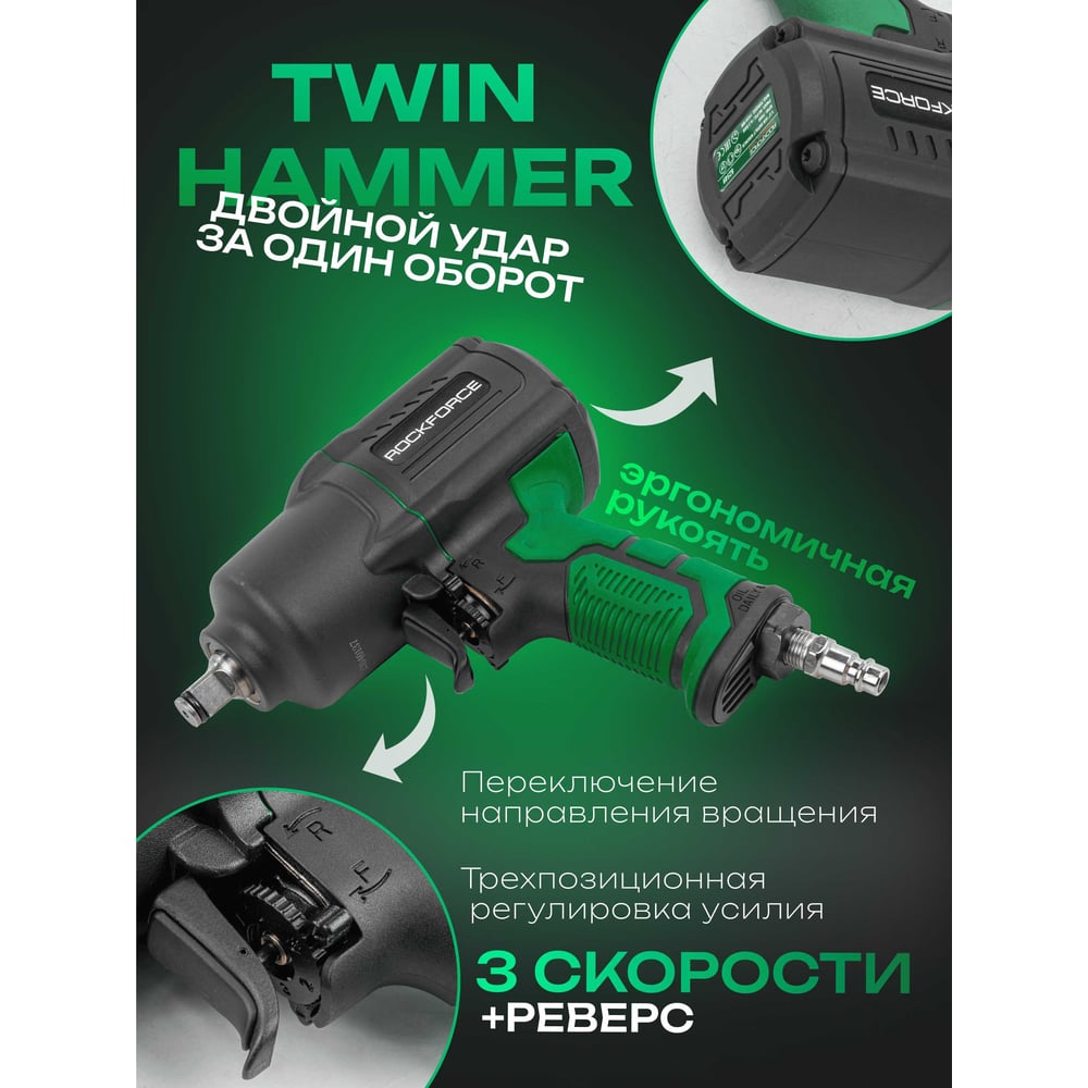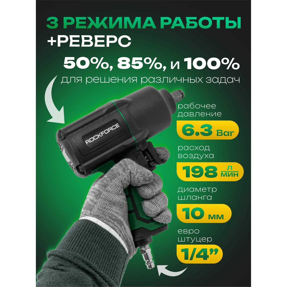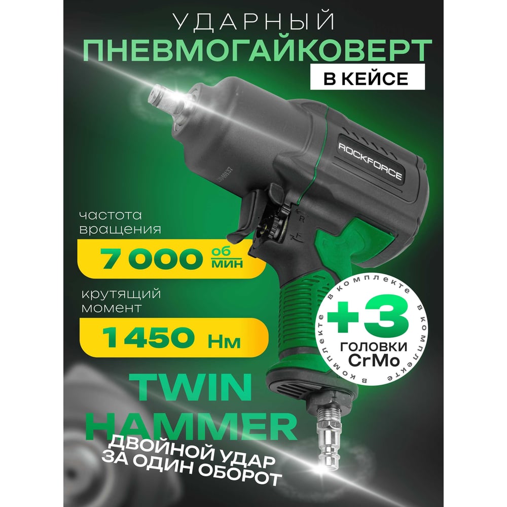 Ударный пневмогайковерт с регулировкой усилия Rockforce набор головок RF-82549K4(48140)