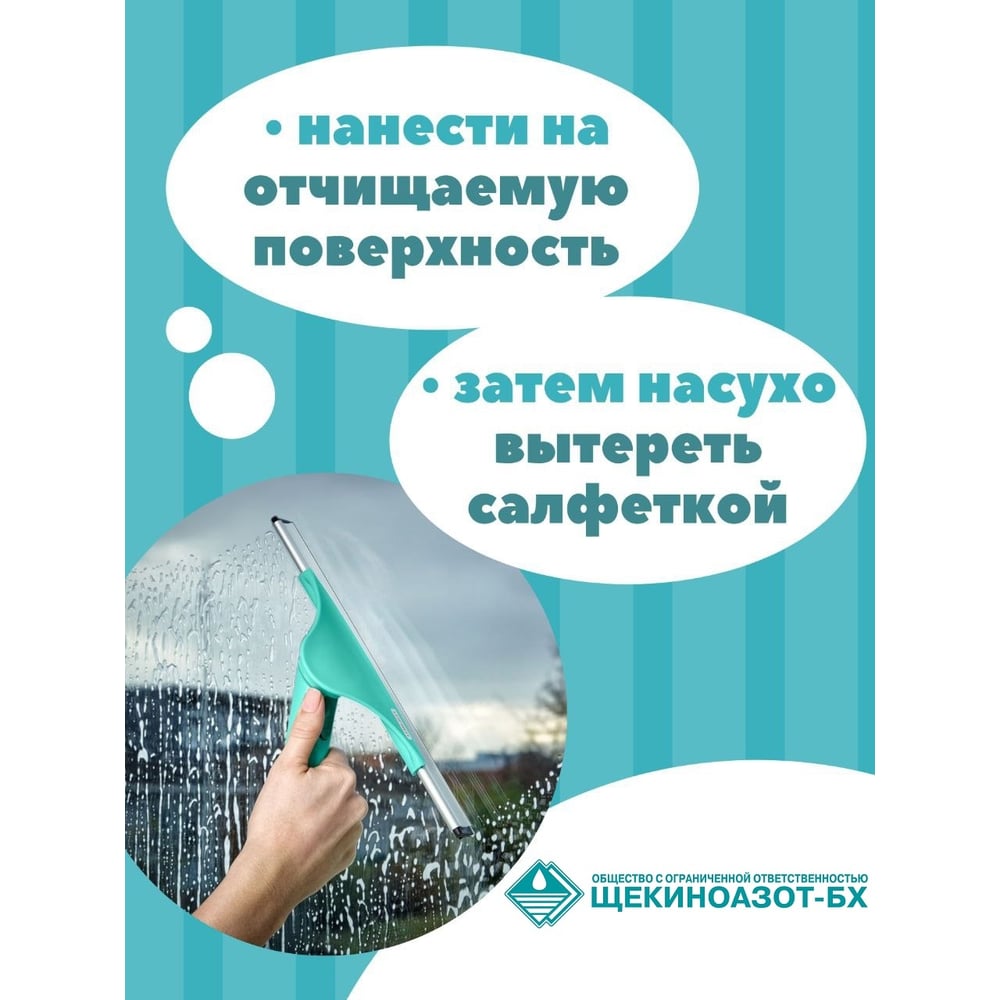 | Состав | специально подготовленная вода > 30%, нашатырный спирт < 5%, неионные ПАВ < 5%, краситель. |