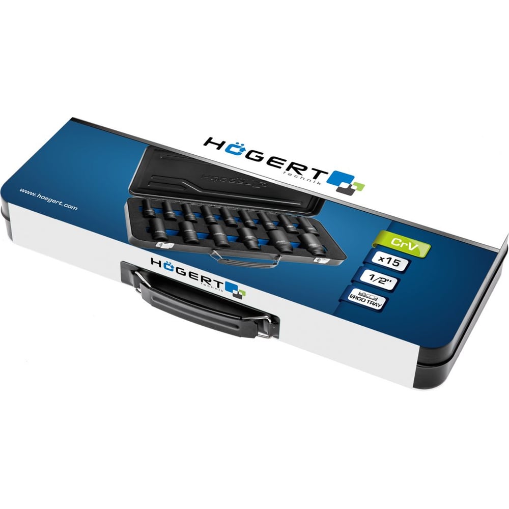 Набор ударных глубоких шестигранных головок (15 шт; 1/2; CrMo) HOEGERT TECHNIK в кейсе HT4R049
