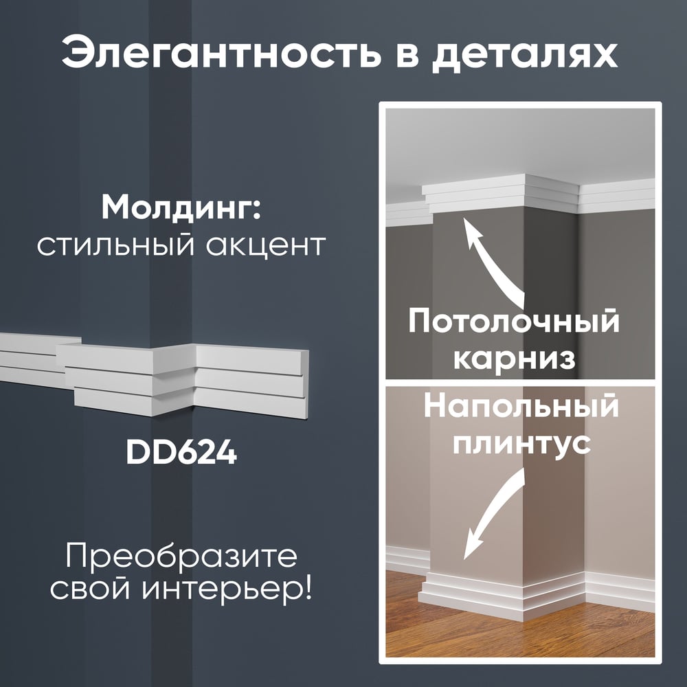 Ударопрочный влагостойкий стеновой молдинг под покраску Decor-Dizayn DD624