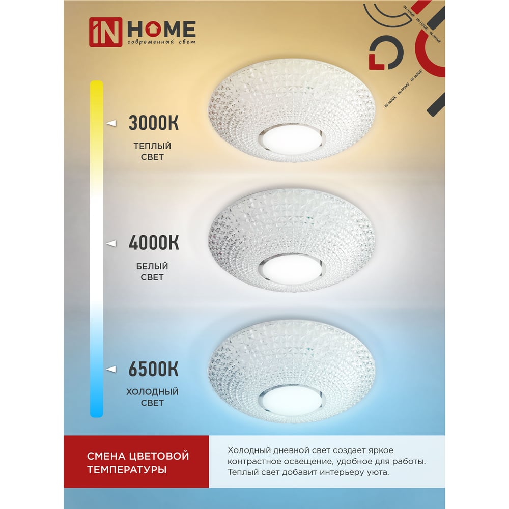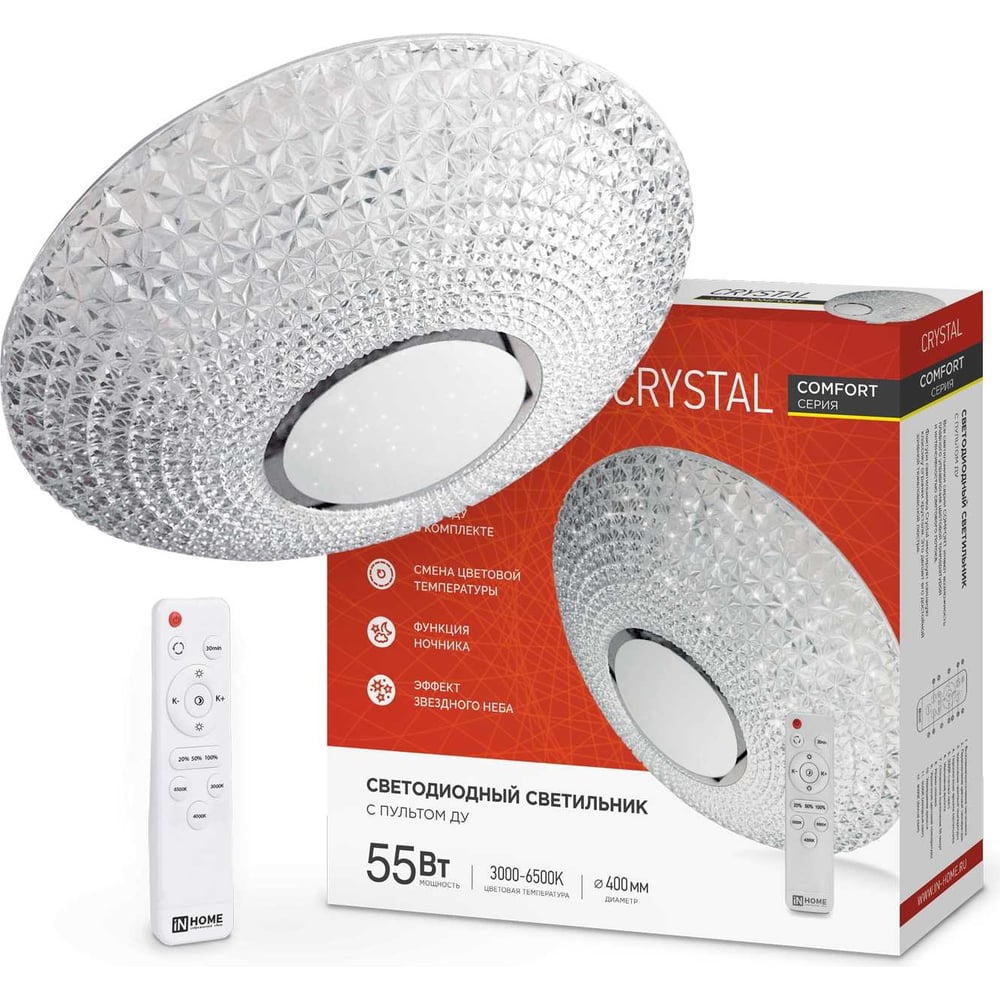Светодиодный светильник IN HOME COMFORT CRYSTAL 55Вт 230В 3000-6500K 4400Лм 400x100мм пульт ДУ 4690612034898