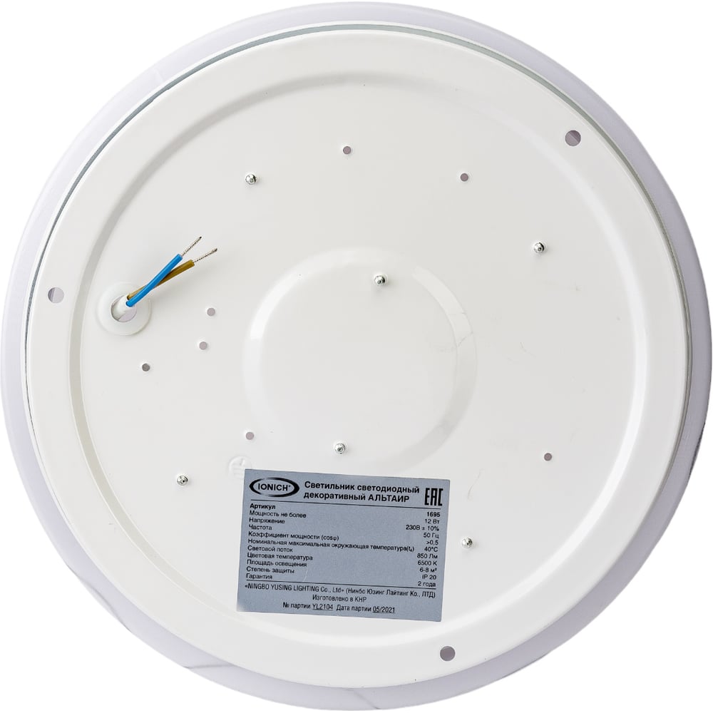 Светодиодный светильник IONICH Альтаир серия 2219, 12 Вт 850 Лм 230В 6500К 215 мм IP20 1695