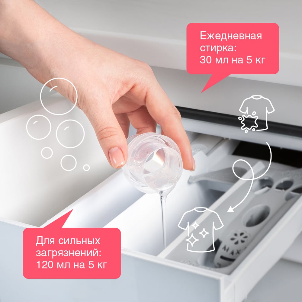 | Расход | 1 - 4 колпачка на стирку, в зависимости от степени загрязнения и жесткости воды |