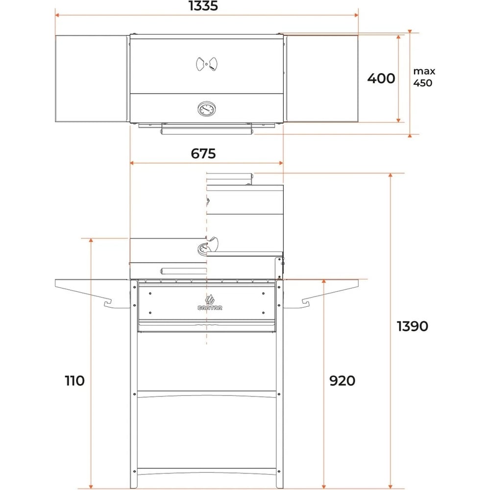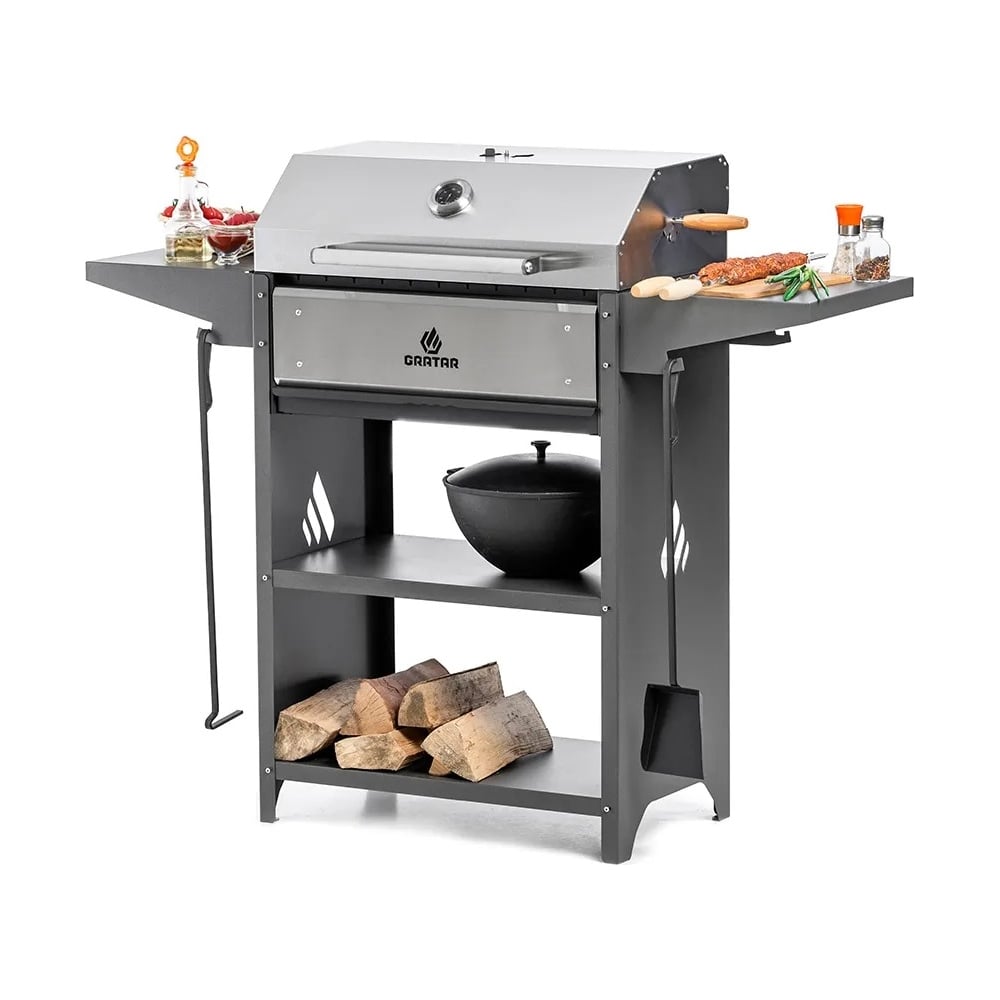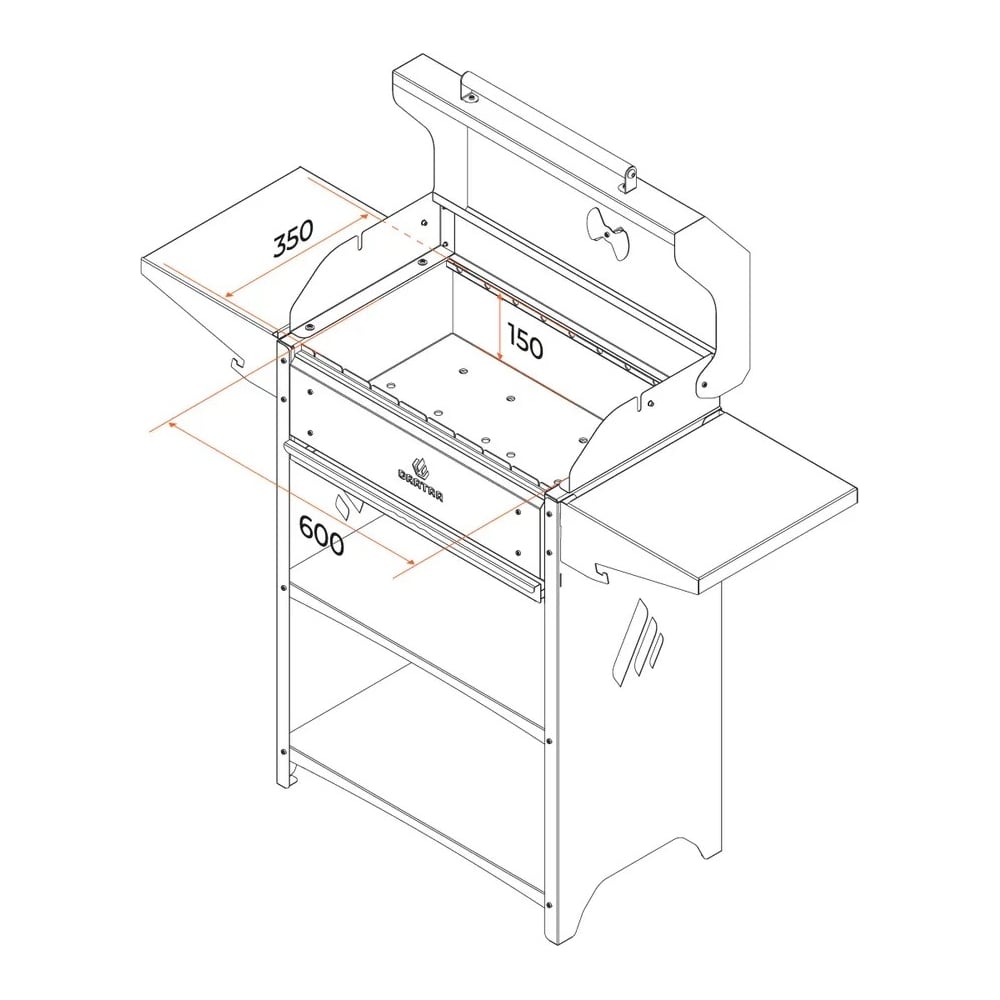 Габариты без упаковки 1332х441х1110 мм Высота 1110 мм Длина 1332 мм Покрытие термостойкое антикоррозионное Ширина 441 мм Цвет черный/серый Вид стационарный Вес нетто 41 кг Материал корпуса углеродистая сталь Крышка да Количество полок 4 шт Вертикальный нет Колесики нет Решетка в комплекте нет Кованый нет Столик да Толщина стенок 2 мм Держатель под казан нет Вертел нет Шампуры нет Раздувайка нет Кочерга нет Разборный есть