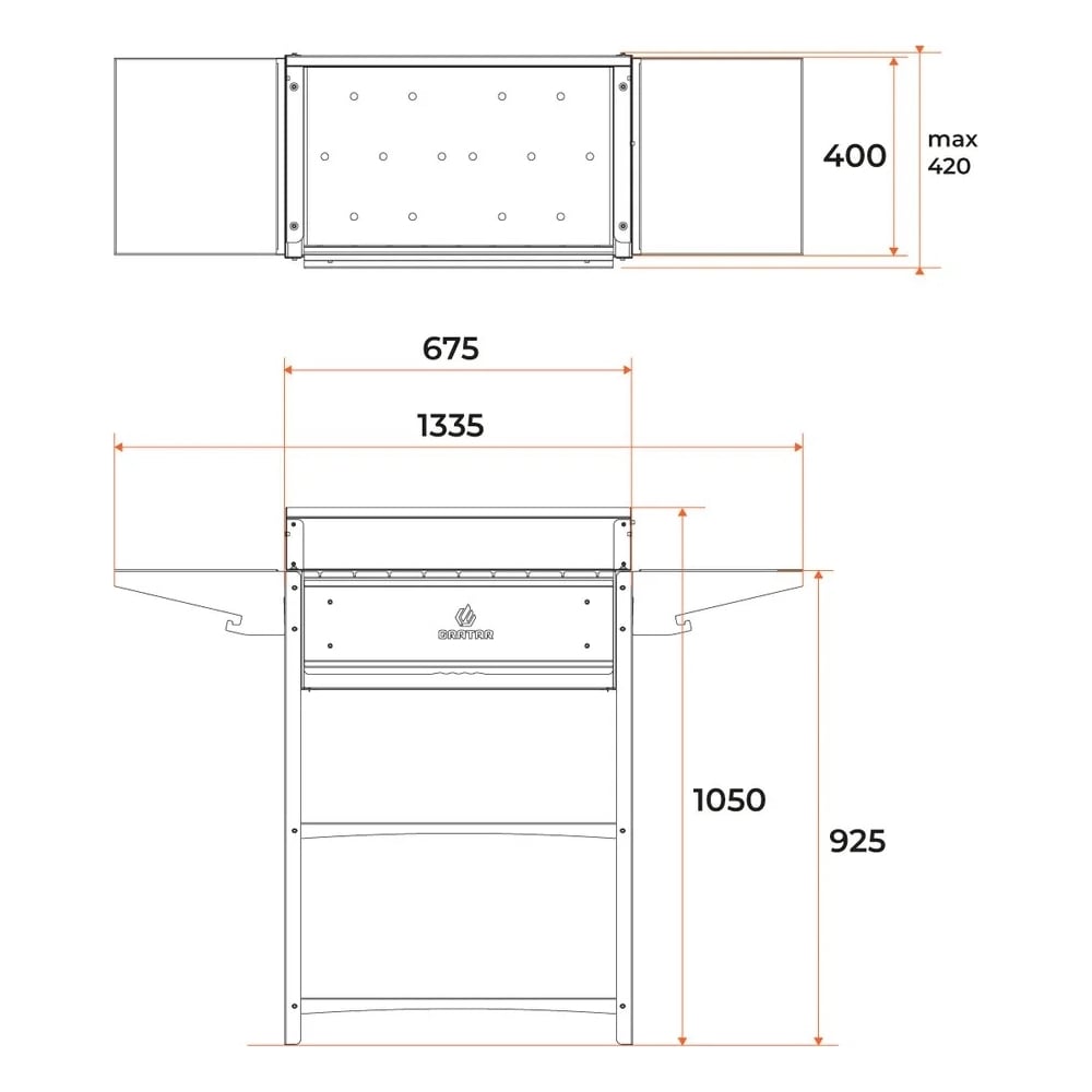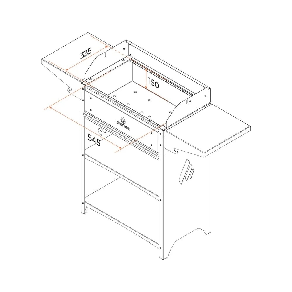 Габариты без упаковки 1332х394х1041 мм Высота 1041 мм Длина 1332 мм Покрытие термостойкое антикоррозионное Ширина 394 мм Цвет черный/серый Вид стационарный Вес нетто 36.3 кг Материал корпуса углеродистая сталь Крышка нет Количество полок 4 шт Вертикальный нет Колесики нет Решетка в комплекте нет Кованый нет Столик да Толщина стенок 2 мм Держатель под казан нет Вертел нет Шампуры нет Раздувайка нет Кочерга нет Разборный нет