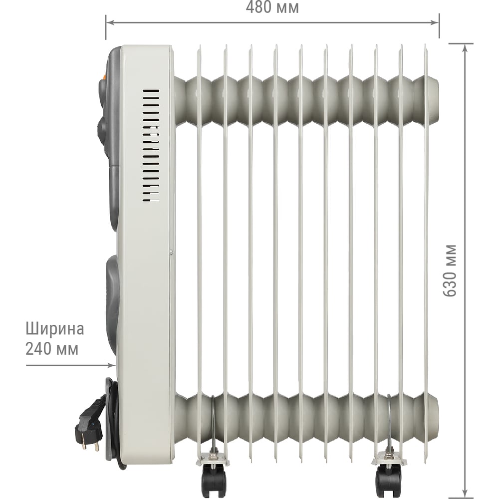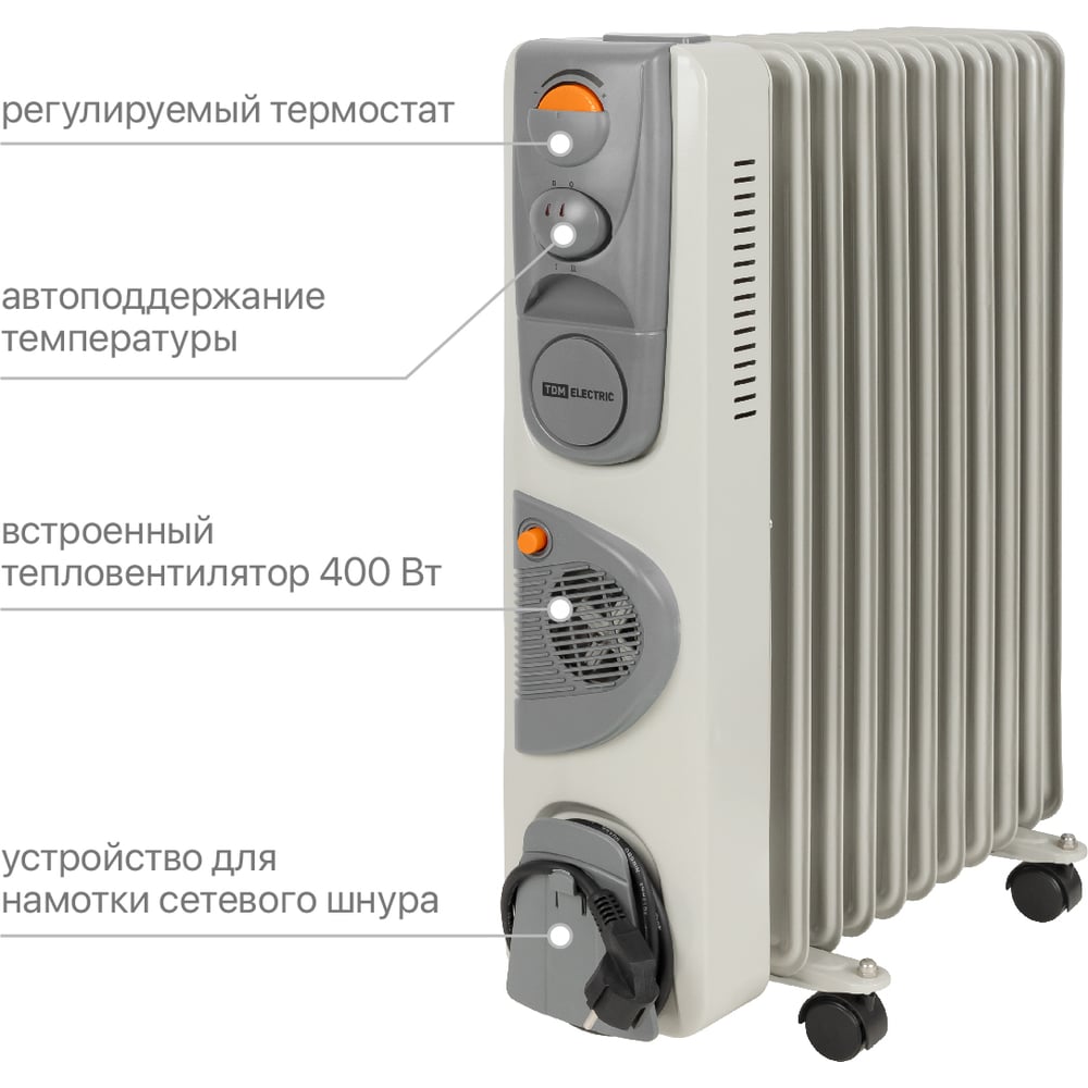 Масляный обогреватель TDM ELECTRIC МО-11ТВ, 2500 Вт, 11 секций, вентилятор, регулировка мощности 1000/1500/2500+400 Вт, термостат, SQ2501-0913