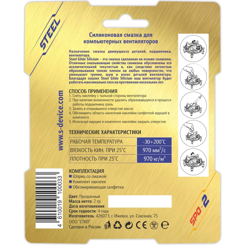 Силиконовая смазка для компьютерных вентиляторов STEEL Glide Silicium SPO-2
