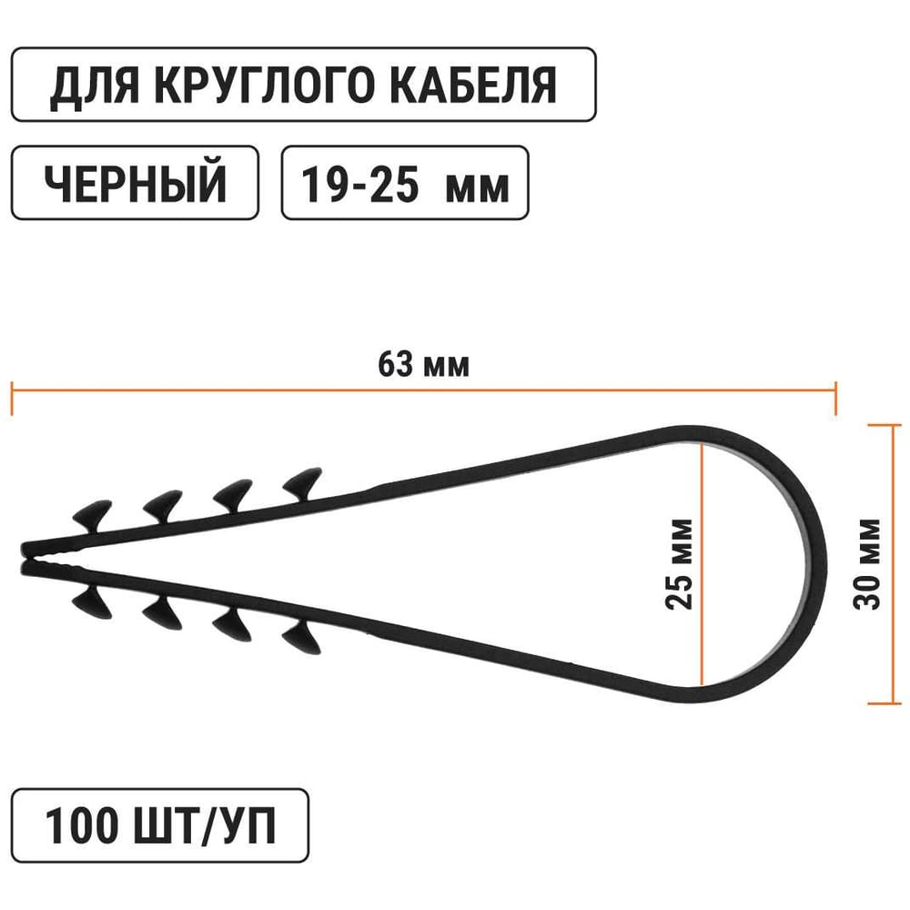 Дюбель-хомут для круглого кабеля TDM ELECTRIC ДХК-25, 19-25 мм, нейлон, черный, 100 шт. SQ0539-0006